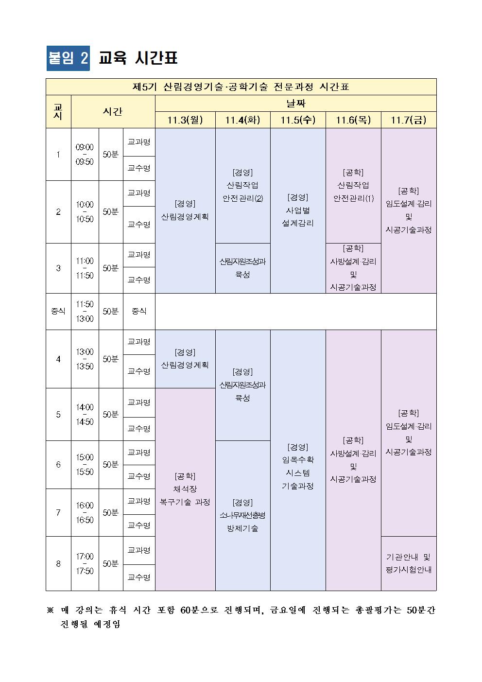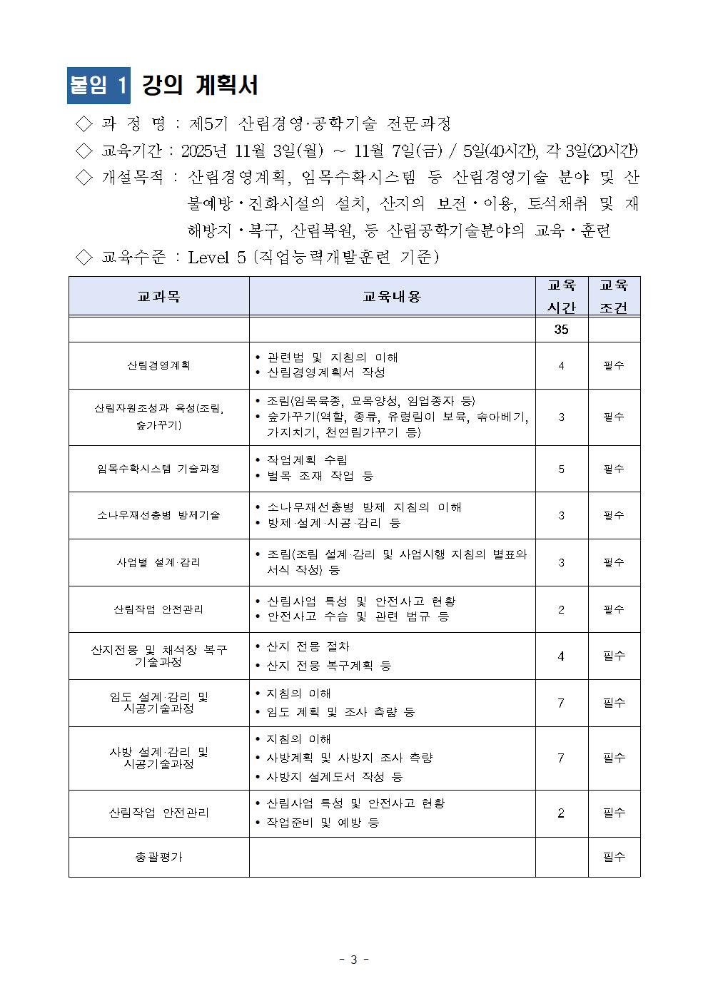 [제2025-042호] 제5기 산림경영+공학 통합과정 개강 공고