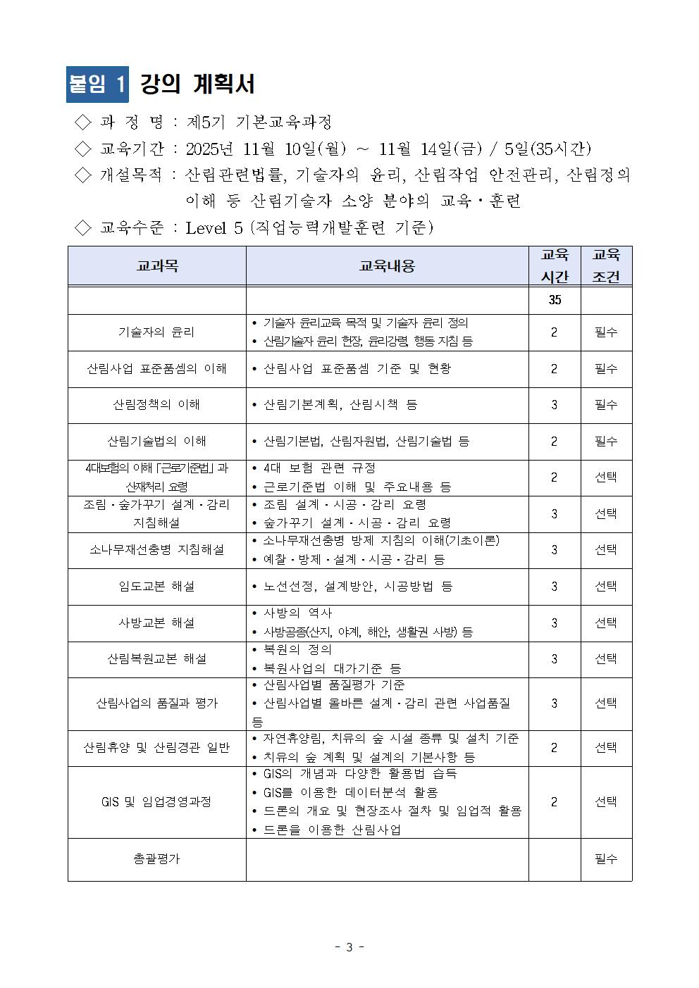 [제2025-043호] 제5기 기본교육과정 개강 공고