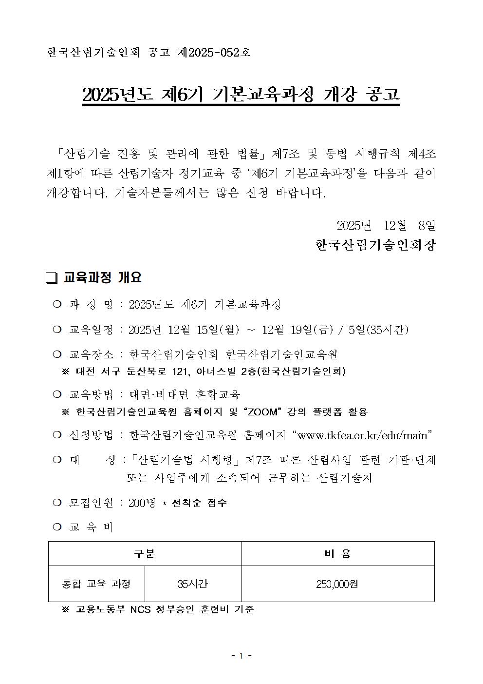 [제2025-052호] 제6기 기본교육과정 개강 공고
