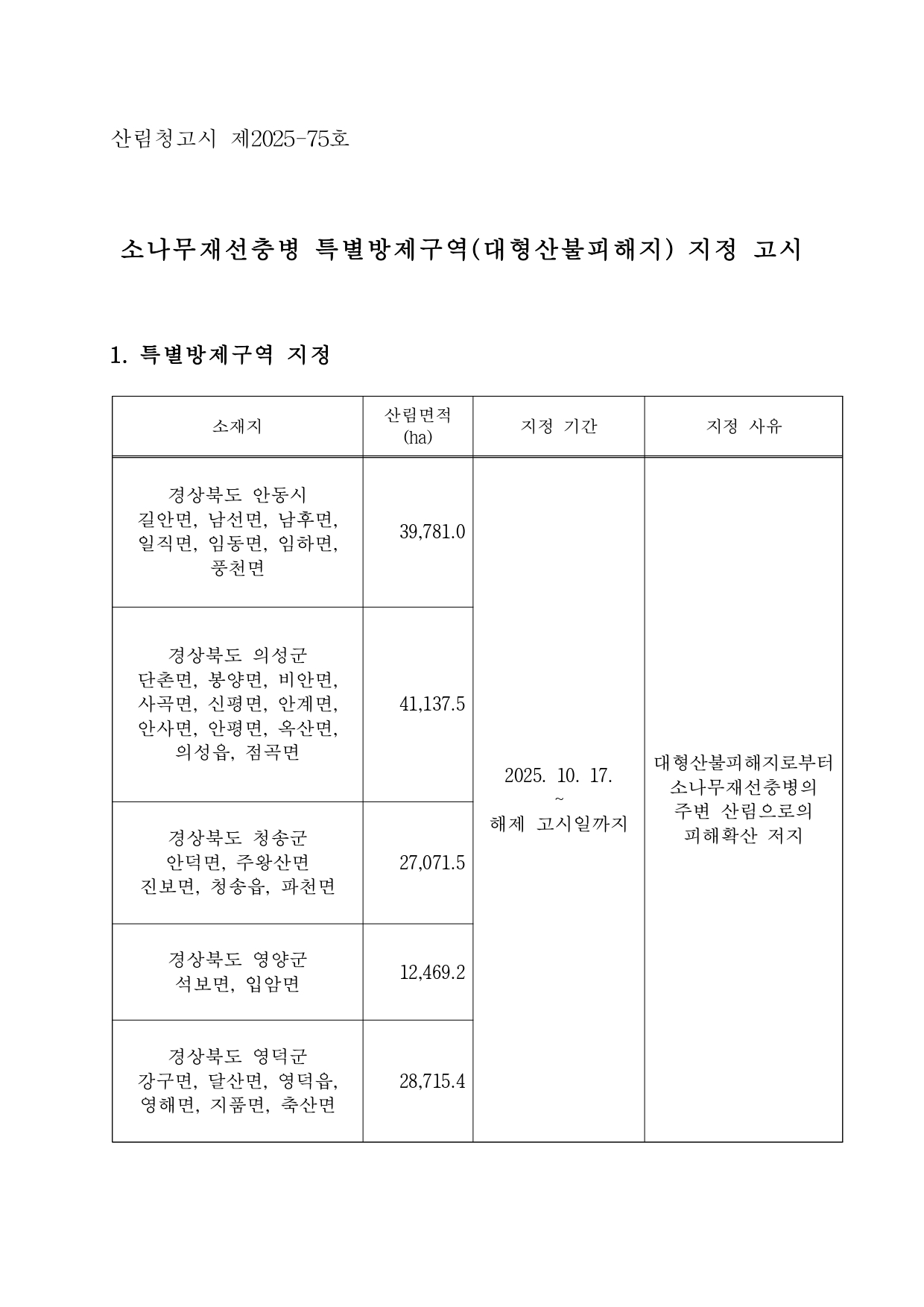 [산림청] 소나무재선충병 특별방제구역(대형산불피해지) 지정 고시 알림